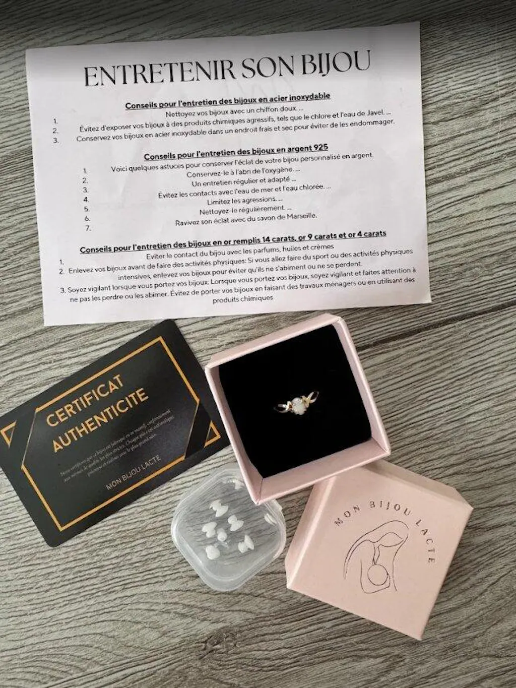 💡 Pour les bijoux au lait maternel, un baguier peut être fourni gratuitement sur demande avant l'envoi du kit.